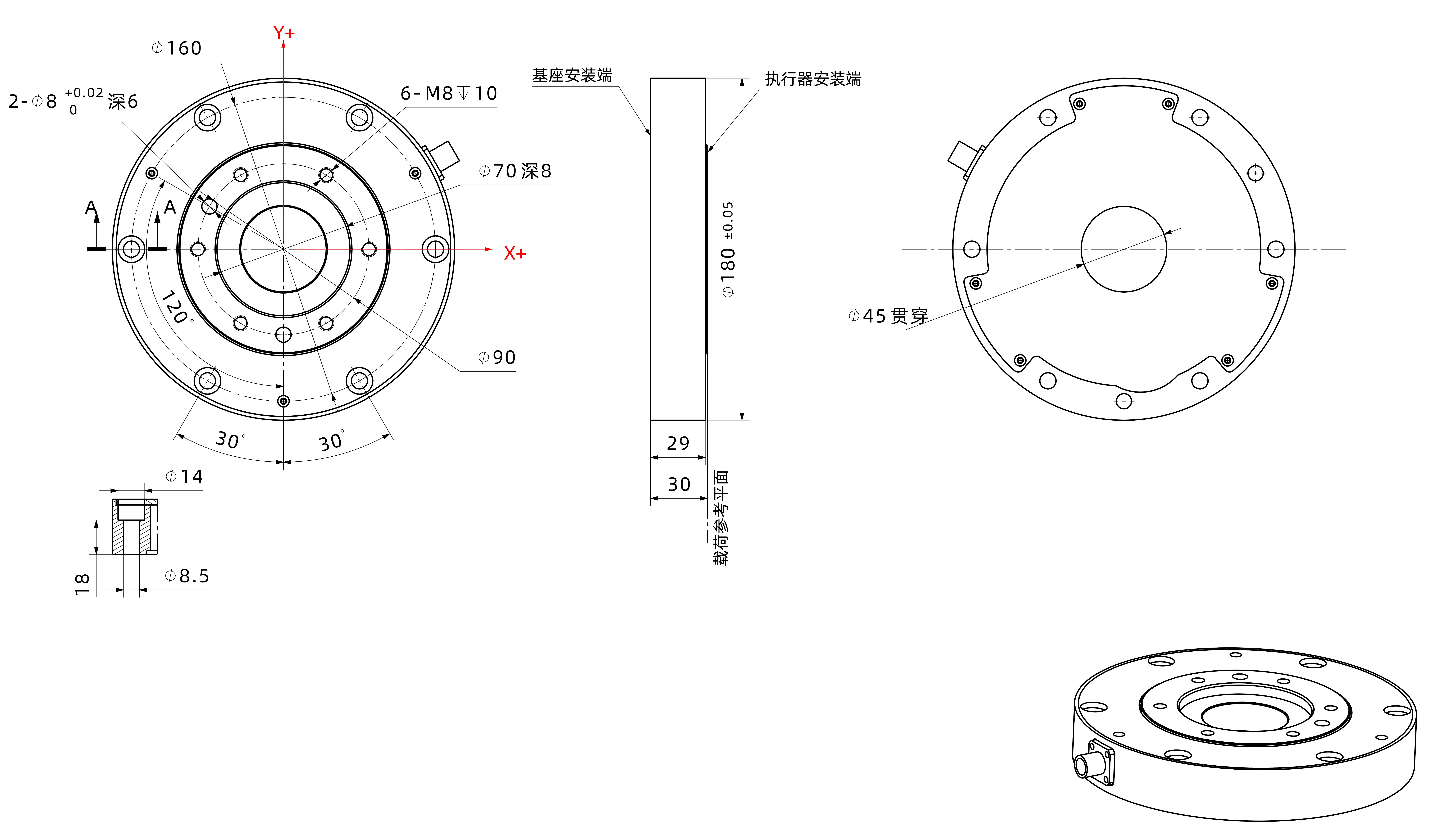 KWR180-H系列六轴力传感器采用高强度合金钢材质,直径180mm,结构坚固耐用。基于六轴联合标定技术有效抑制维间串扰,支持多协议数字信号输出,可灵活适配各类数据采集设备。