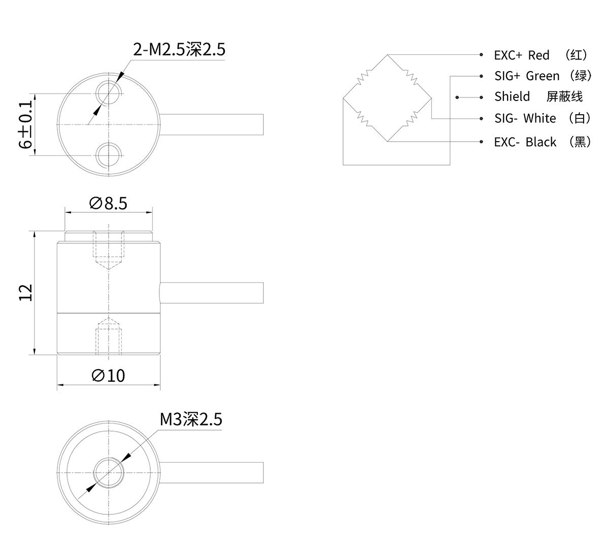 线缆规格 Φ2×500 mm