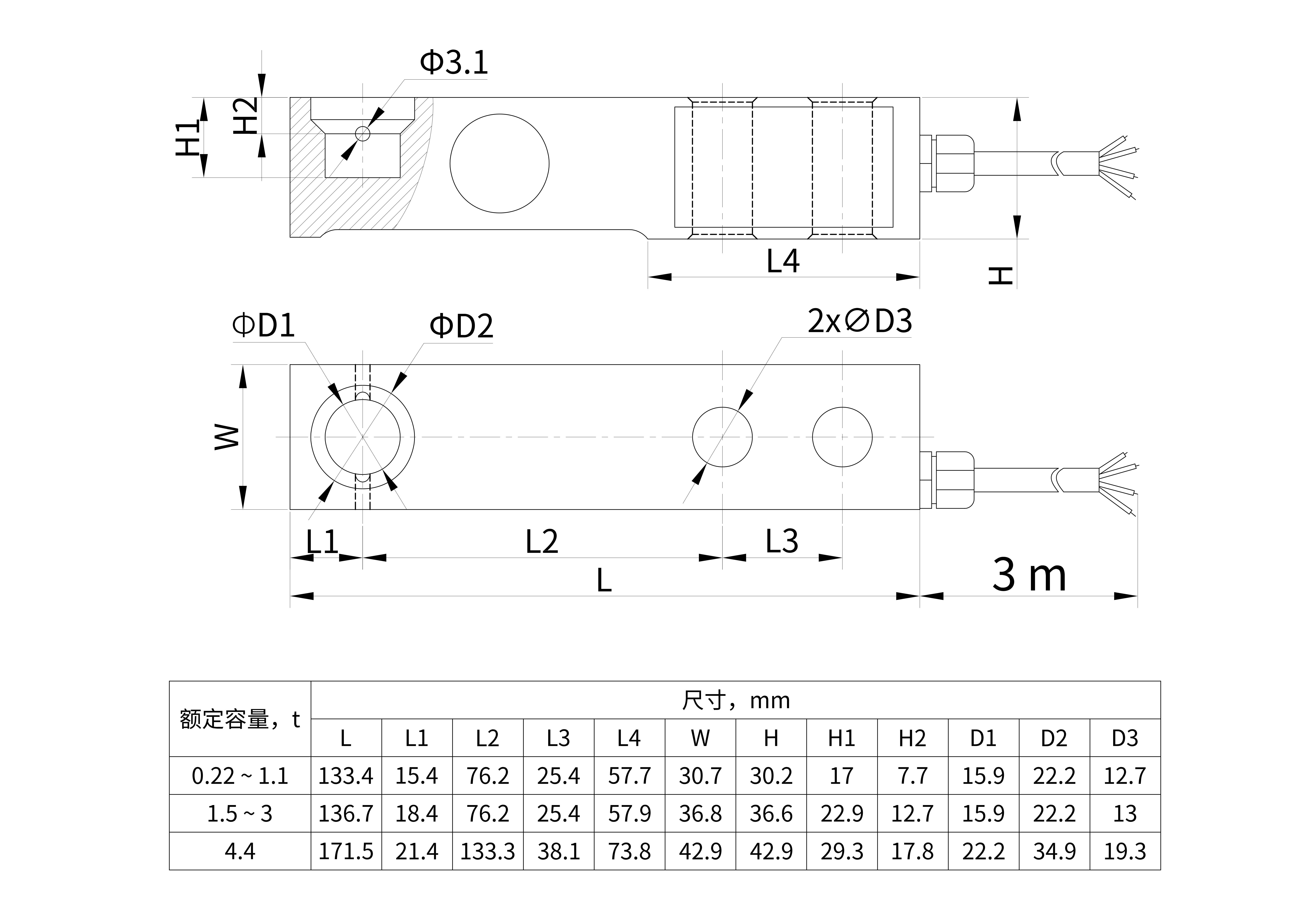 额定量程 kg 220/300/500/550/1000/1100/1500/1760/2000/2200/3000/4400